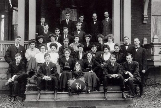 1913 photo. Galen Tilden (son of George and Lydia) is the third from the left in the second row and his wife Ina is the fourth from the left in the same row.